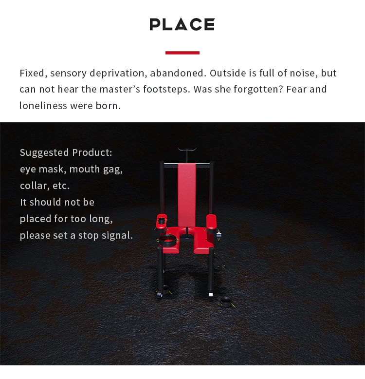 The Bondage Chair, also known as the Torture Chair, is a heavy-duty, meticulously designed piece of BDSM furniture made for intense restraint and control. Built with durable materials and equipped with multiple secure attachment points, this chair allows for complete immobilization, making it an ideal choice for those exploring advanced bondage and power dynamics. Each strap and buckle is crafted for both security and comfort, ensuring that the restrained person remains securely in place for prolonged sessions.